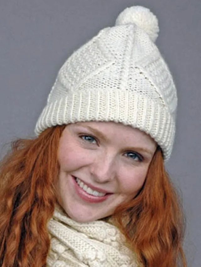 Aran Wool Hats|Ladies Hats*Sweater Shop Hand Knit Aran Hat with bobble Natural