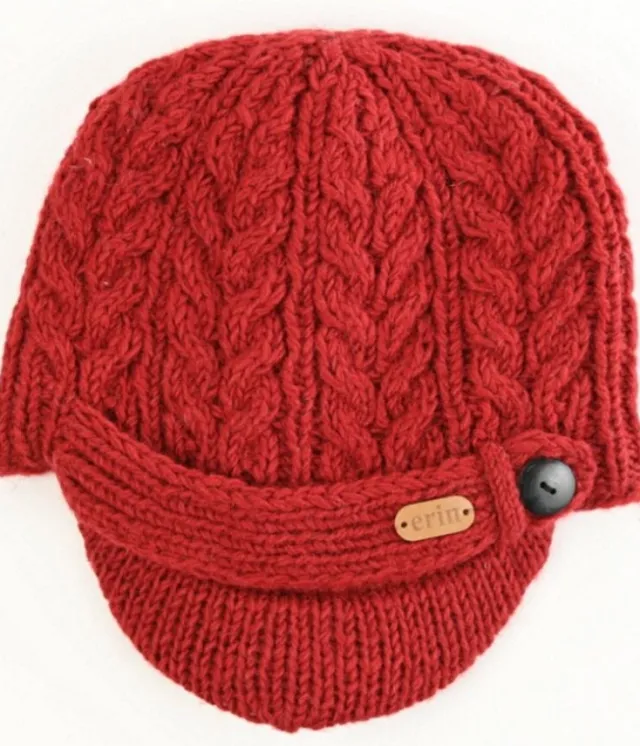 Aran Wool Hats*Sweater Shop Erin Peak Cable Knit Hat Red