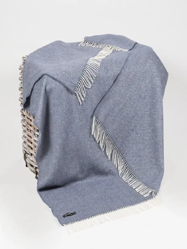 Cashmere & Merino Throws*Sweater Shop Wool and Cashmere Dusty Blue Herringbone Col:1476