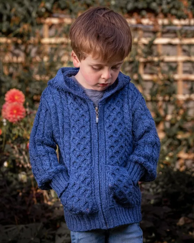 Childrens’ Aran Cardigans|Kids Aran Sweaters*Sweater Shop Kids Merino Hooded Aran Zip Cardigan