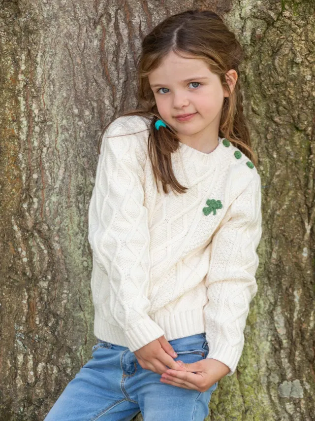 Kids Aran Sweaters|Baby & Toddler Sweaters*Sweater Shop Cream Cable Knit Kids Sweater with Shamrock