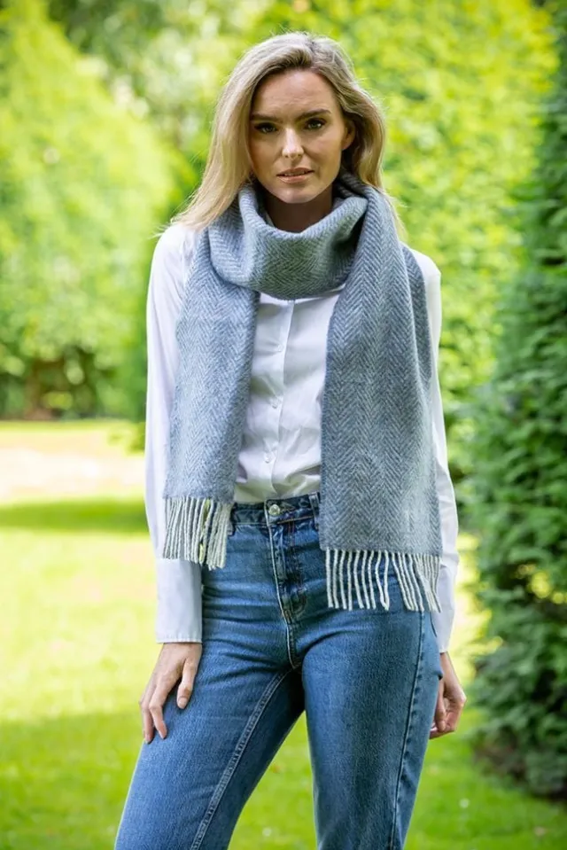 Ladies Wool Cashmere Scarves*Sweater Shop Wool and Cashmere Blue Herringbone Scarf 2424