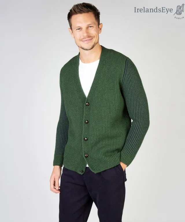 Mens Aran Cardigans|Mens Fisherman Sweaters*Sweater Shop Pinstripe Cardigan Green