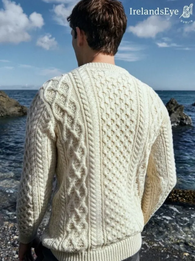 The men’s Aran cable knit sweater is a must-have for every man’s closet. Made in Dublin County, Ireland, this classic pullover is what you need to complete your looks. The sweater combines traditional styles with modern trends to enhance your looks.What else can you expect from a sweater made from 100% pure merino wool other than warmth, breathability, and extra softness? Whether out in the cold or walking around the streets, this men’s sweater will offer warmth while maintaining a classic look. The material’s breathability and insulating features make it all-weather wear.Want to maintain an authentic Irish knit look? This men’s sweater is a perfect piece hand-made by traditional crafting families in Ireland. It features honeycomb patterns at the center panel of the body, symbolizing hard work—when wearing it to work, you’ll always feel motivated. Rows of cable stitches adorn this classic jumper on the sides of the center paneling, symbolizing the link to life.This men’s cable knit sweater is available in various colors to suit your preferences. Moreover, the jumper fits snugly as the stitches loosen when you wear it. The sweater also has the following extra features:Stitched in a traditional Aran style for a classic lookTemperature-regulating material suitable for all seasonsMade from 100% pure merino wool for warmth and comfortFeatures a blend of honeycomb and cable stitches for a unique design