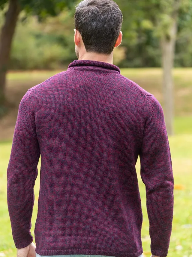 Mens Fisherman Sweaters|Mens Knitwear*Sweater Shop Unisex Roll Neck Sweater Merino Wool Dark Berry
