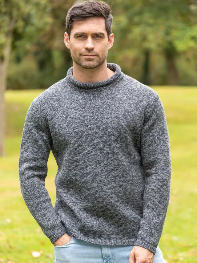 Mens Fisherman Sweaters*Sweater Shop Unisex Roll Neck Merino Wool Sweater Slate