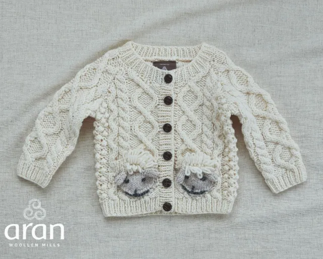 Handmade with the love of Ireland, this children’s merino cardigan guarantees warmth throughout the cold autumn and winter months. This adorable cardigan spots leather—look buttons for that suave look and to keep the cold at bay. The cardigan also has the traditional cable and diamond Aran design that is classy and functional.The 100% wool used to knit up this cardigan has unique properties that make it perfect for children’s clothes. It is breathable and naturally regulates temperature helping the child play outside comfortably and keeping them warm indoors. The wool also does not irritate the child’s tender skin and is perfect for those with skin allergies.The wool is odour resistant and keeps mold and mildew away. Thanks to its natural elasticity, wool will stretch and not lose shape for durability. The cardigan comes in three sizes: small 6–9 months, medium 9–12 months, and large 12–18 months.Other striking features include the following:The size range makes it easier to pick as a giftWool moisture—wicking properties to keep the child dryThe complex structure of wool makes it resilient to wear and tearThe signature cable and diamond Aran design adds a layer of warmthWool fibres are renewable and sustainable as each year, sheep produce fleece
