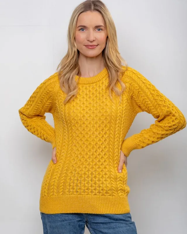 Womens Aran Fisherman Sweaters*Sweater Shop Ladies 100% Merino Wool Aran Sweater Sunshine