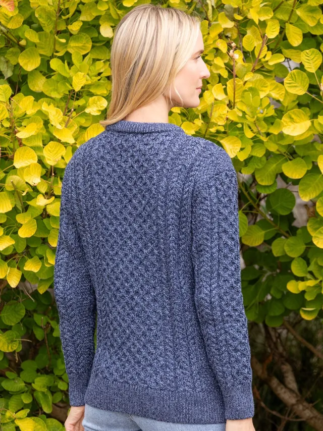 Womens Aran Fisherman Sweaters*Sweater Shop Unisex Merino Wool Aran Sweater Denim Marl