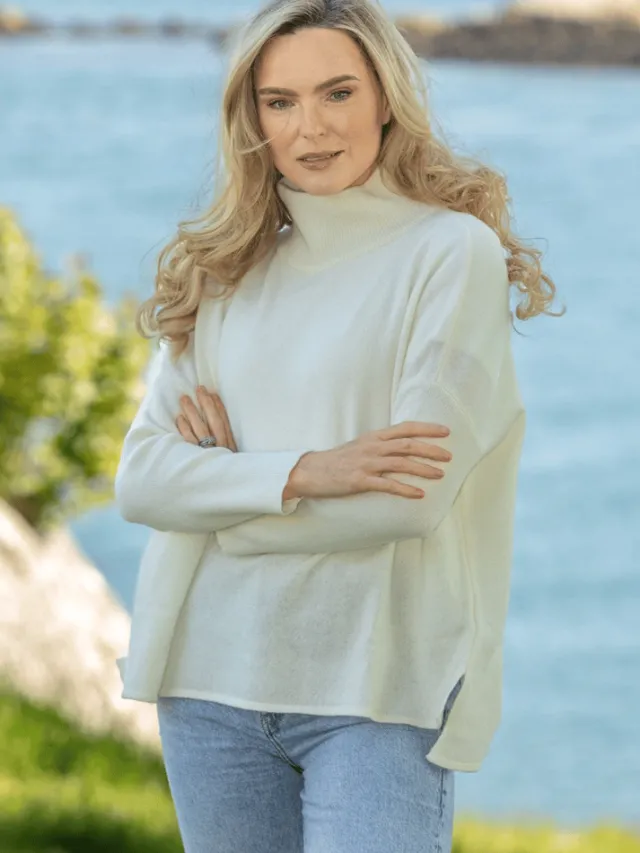 Womens Irish Knitwear|Cashmere And Merino Wool Sweaters*Sweater Shop Merino Wool & Cashmere High Neck Sweater Royal White