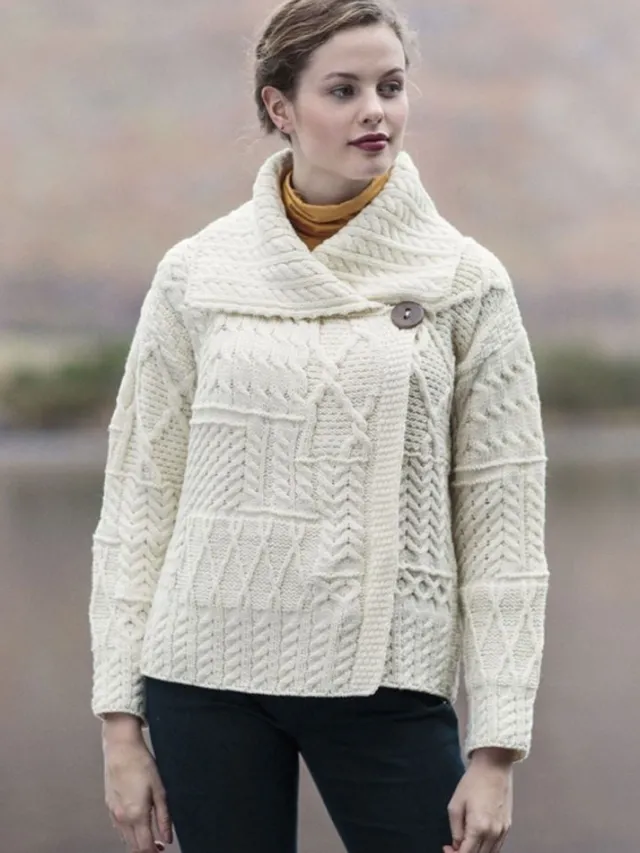 Womens Irish Knitwear|Ladies Cardigans*Sweater Shop One Button Aran Ladies Cardigan