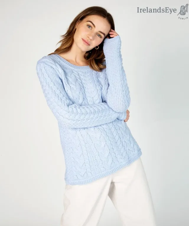 Womens Irish Knitwear*Sweater Shop Primrose Aran Sweater Ice Blue