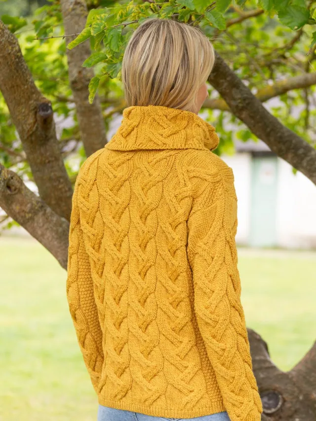 Womens Irish Knitwear|Womens Aran Fisherman Sweaters*Sweater Shop Aran Super Soft Cowl Neck Sweater Sunshine