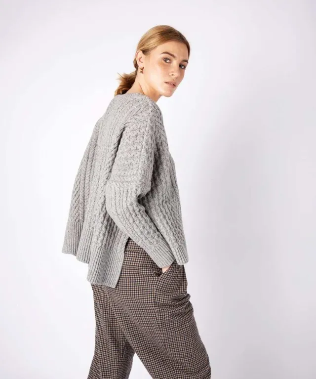 Womens Irish Knitwear|Womens Aran Fisherman Sweaters*Sweater Shop Cropped Aran Sweater Pearl Grey