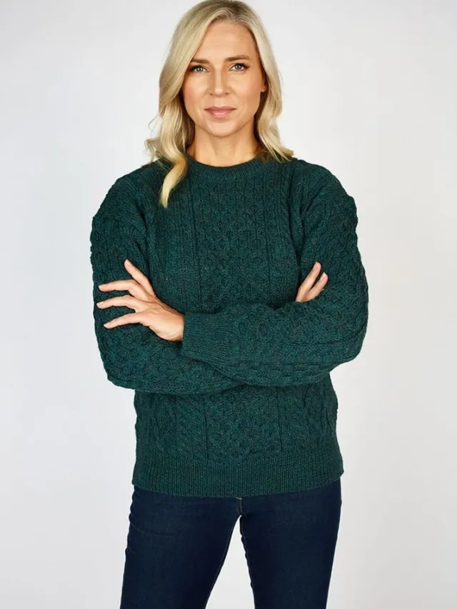 Womens Irish Knitwear|Womens Aran Fisherman Sweaters*Sweater Shop Pure Wool Unisex Aran Sweater Moss Green