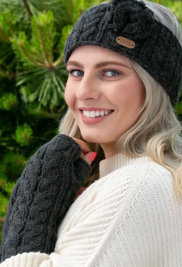 Aran Gloves & Mittens*Sweater Shop Aran Cable Handwarmers Charcoal