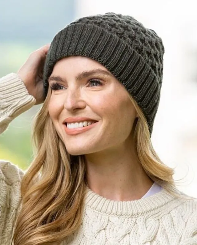 Aran Wool Hats|Ladies Hats*Sweater Shop Irish Aran Hat Army Green