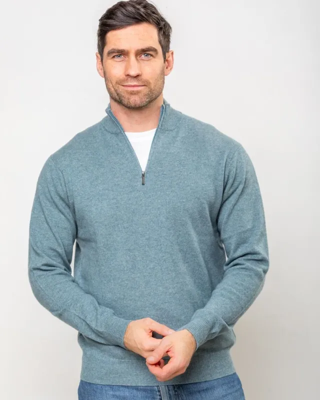 Cashmere And Merino Sweaters|Mens Knitwear*Sweater Shop Cashmere and Merino wool 1/2 Zip Sweater Glacier