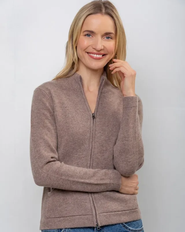 Cashmere And Merino Wool Sweaters|Ladies Cardigans*Sweater Shop Cashmere and Merino Full Zip Cardigan Light Brown