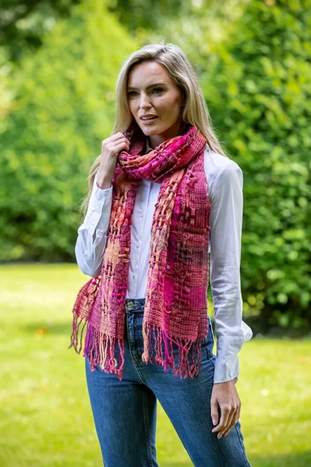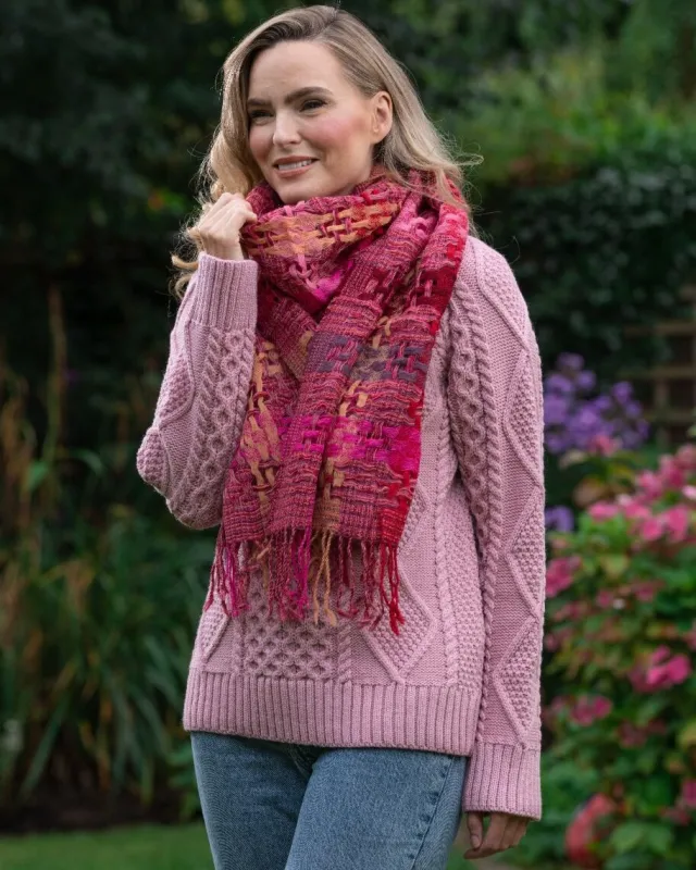Ladies Aran Scarves*Sweater Shop Suantrai of Ireland Open Weave Wool Scarf Pink