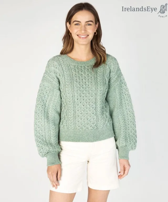 Ladies Cardigans|Womens Aran Fisherman Sweaters*Sweater Shop Honeysuckle Cropped Aran Sweater Sage