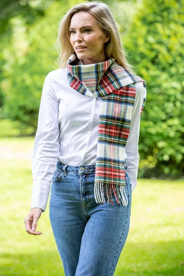 Ladies Lambswool Scarves*Sweater Shop 100% Lambswool White Stewart Tartan