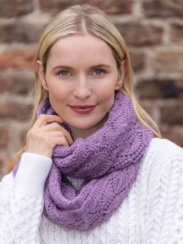 Super Soft merino Wool Infinity scarf in LavenderThis super soft merino wool Infinity Scarf is ideal for keeping you warm and stylish this winter. It can be wrapped around and doubled up as a cosy infinity scarf or it can be worn full length down either. It is so luxurious and cosy on your skin, you will never want to take it off.We love that this infinity scarf will keep you warm yet so stylish this winter. It comes in a variety of gorgeous colours. We can see beautiful Irish stitching throughout the wool scarf making it a really fashionable piece.Available in one size only so its a brilliant gift for your wife, daughter or friend!This 100% Merino wool super soft snood is the ultimate accessory for your wardrobe this winter. Soft and cosy on your skin, it is what you need to keep you warm and snug this Autumn Winter.