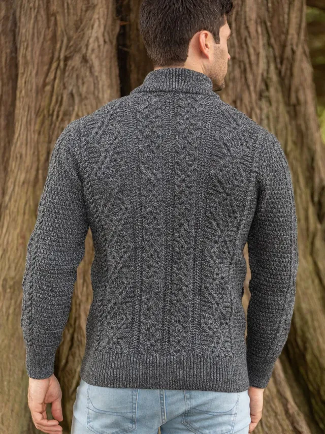 Mens Aran Cardigans|Mens Knitwear*Sweater Shop Men’s Fisherman Full Zip Cardigan – Slate