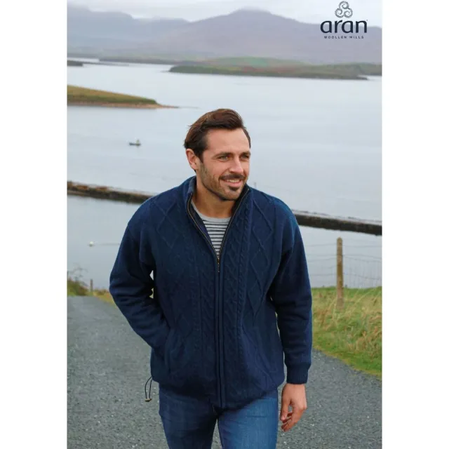 This mens full zip cardigan is a windproof cardigan guaranteed to keep you cosy this Winter. It is fully lined with windproof fabric and it 100% wool on the outside of cardigan so it is perfect for someone who loves the warmth but may be sensitive to wool directly on their skin. Features drawsting hem so you can adjust to the style you want to wear it. Has stunning aran diamond and cable knit stitching, making this cardigan a winner this Winter. SMLXLXXLCHEST4850525456LENGTH262727.528.529SLEEVE3334343536