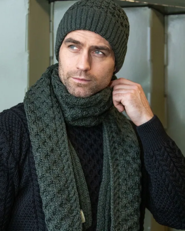 Mens Aran Scarves*Sweater Shop Cable Knit Unisex Scarf Army Green – 100% Merino Wool