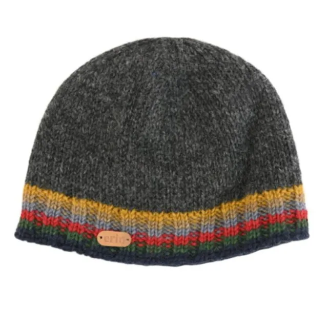 Mens Caps*Sweater Shop Rib Pullon Hat Charcoal with yellow/red band