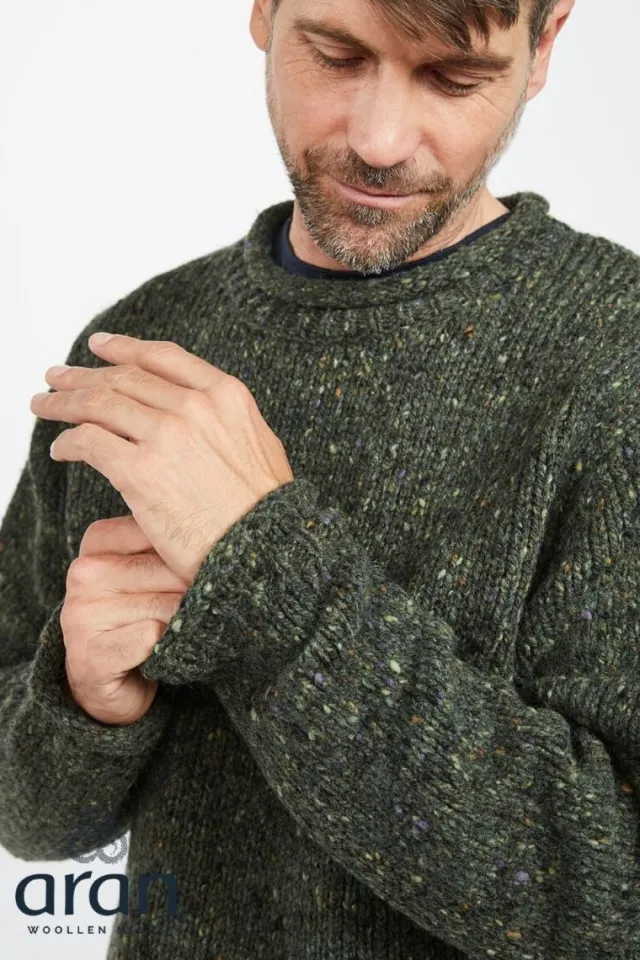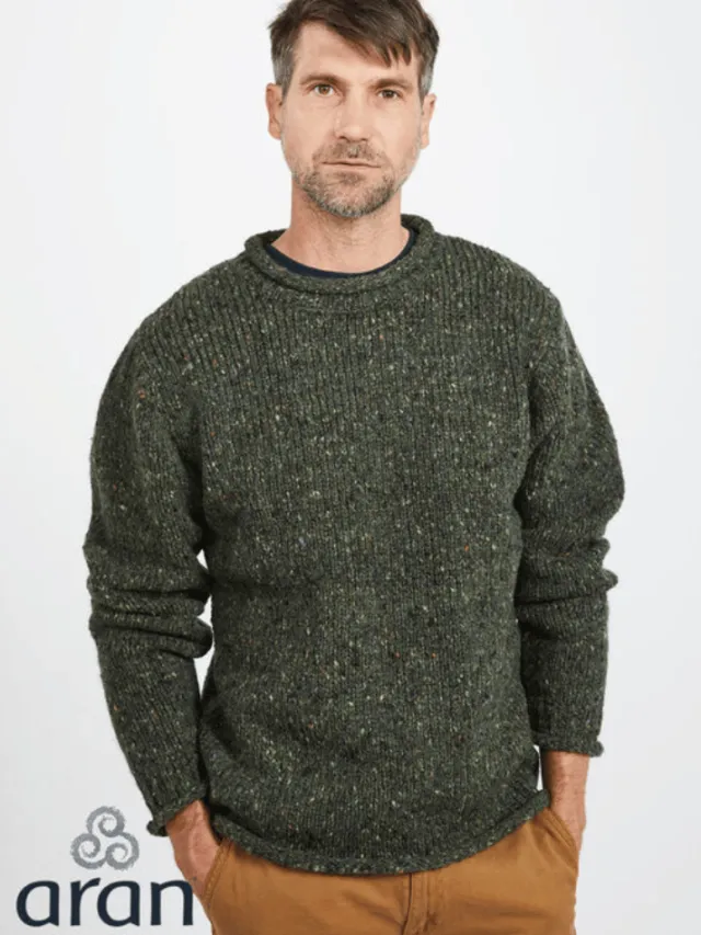 Mens Fisherman Sweaters|Mens Knitwear*Sweater Shop 100% Donegal Wool Roll Neck Sweater Olive Green