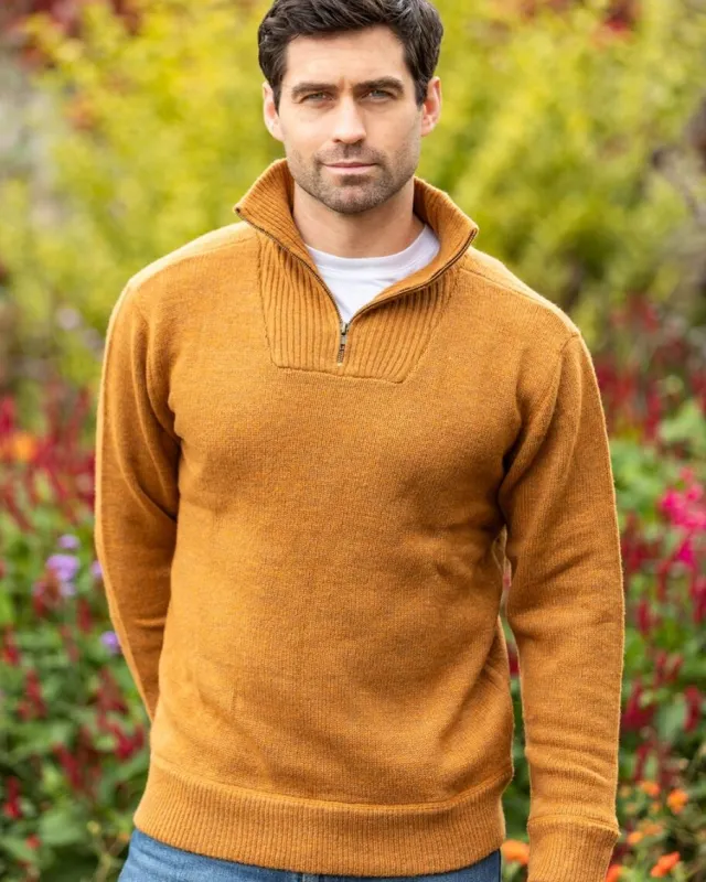 Mens Fisherman Sweaters|Mens Knitwear*Sweater Shop Half Zip Lambswool Sweater Warm Sand