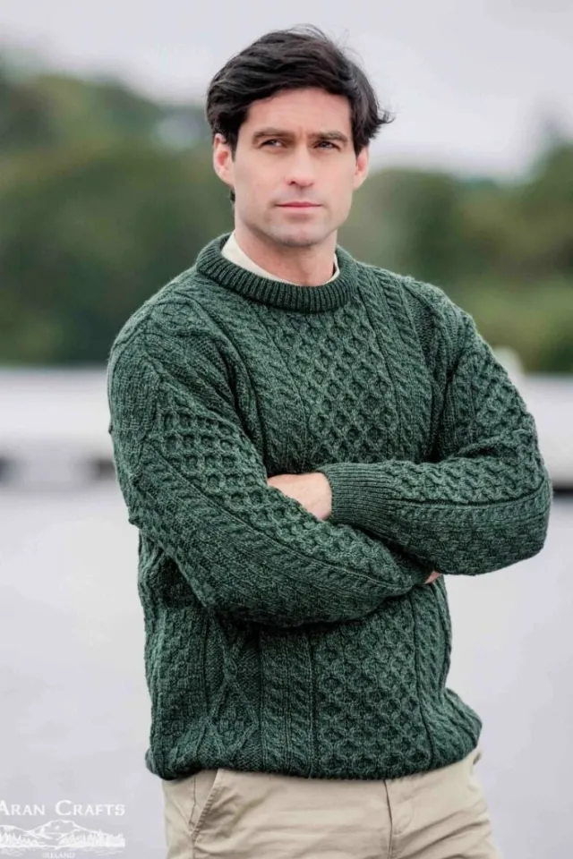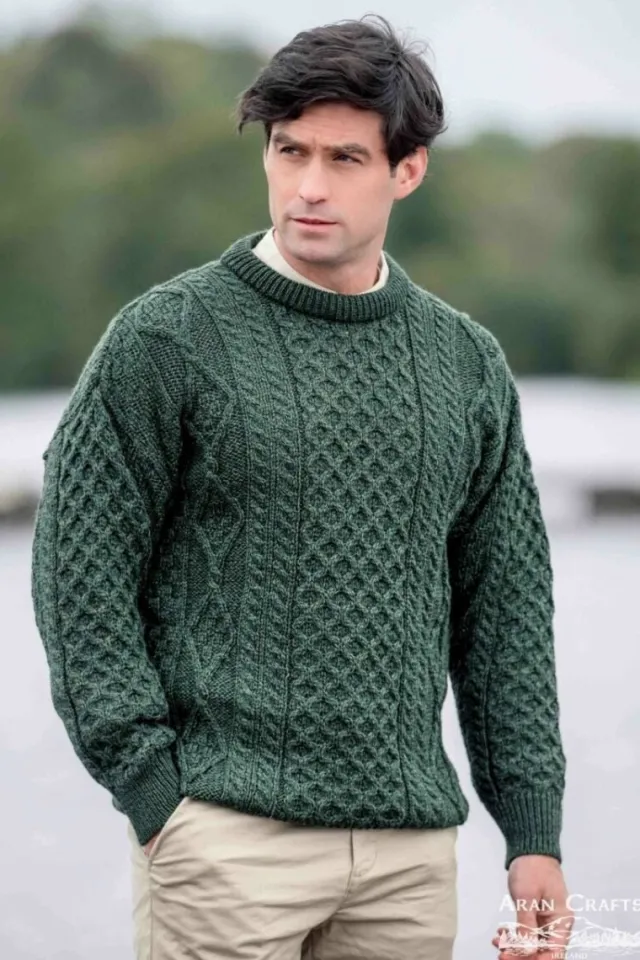 Made from 100% Super Soft Merino WoolThe most famous style in Aran Knitting is the traditional crew neck sweater. This unisex sweater is knit in super soft merino wool which gives this traditional sweater a luxurious feel. A timeless piece of Irish knitwear which incorporates a variety of Irish Aran Stitches throughout that were believed to bring luck, success, and health to the wearer.Sizes Available: XSmall to XXLargeColours Available: Natural, Oatmeal Nep & Army GreenGarment Length: XSmall 24″/Small 25″/Medium 26″/Large 27.5″/XLarge 28″/XXLarge 28.5″