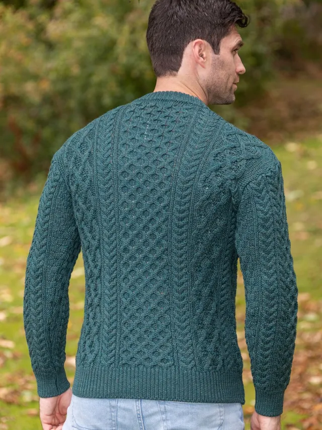 Womens Aran Fisherman Sweaters|Ladies Cardigans*Sweater Shop Super Soft Crew Neck Sweater Green