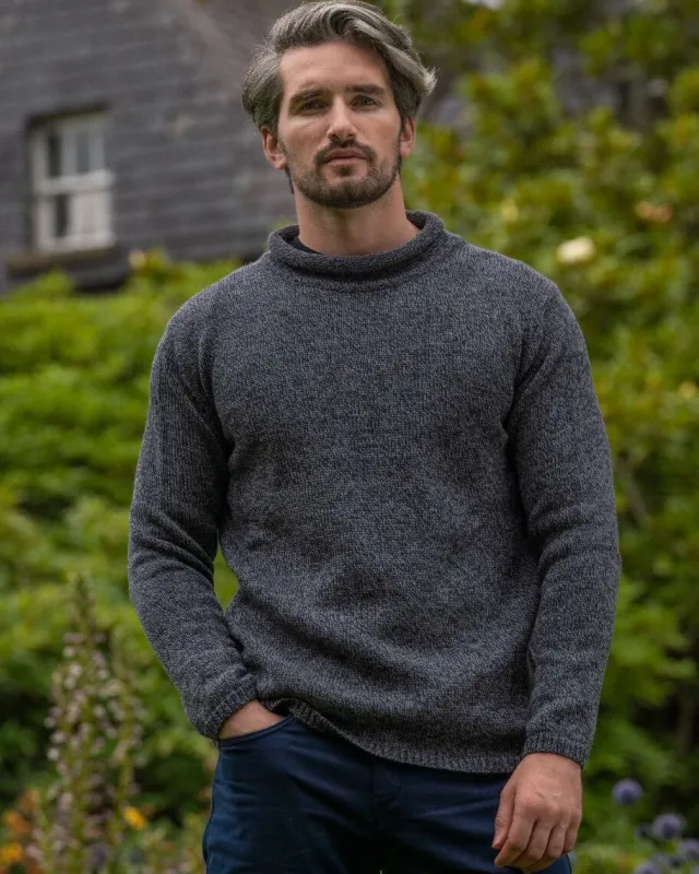 Mens Fisherman Sweaters*Sweater Shop Unisex Roll Neck Merino Wool Sweater Slate