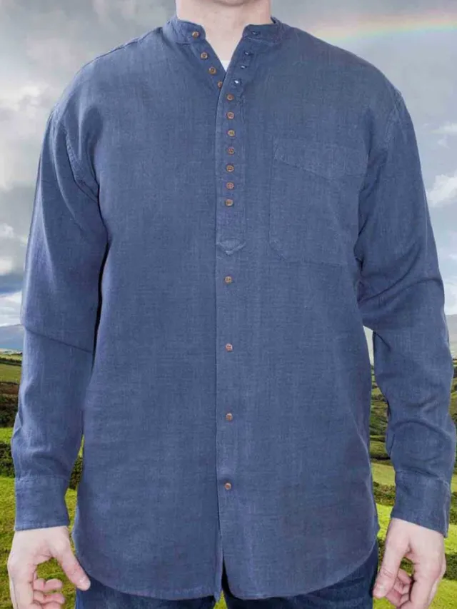 Traditional Irish Grandfather Shirt collarless shirt worn throughout IrelandMade of 100% Cotton Made in IrelandRelaxed fitAlso known as a ‘Sunday shirt’Delivery 2-10 working days (Irish Post)