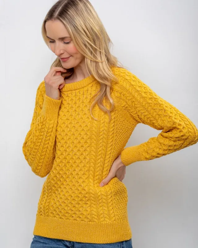 Womens Aran Fisherman Sweaters*Sweater Shop Ladies 100% Merino Wool Aran Sweater Sunshine