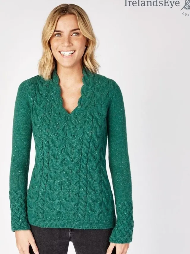 Be the first to review “Womens Irish Knitwear|Cashmere And Merino Wool Sweaters*Sweater Shop Wool and Cashmere Cable v Neck Sweater – Green Garden” Cancel reply