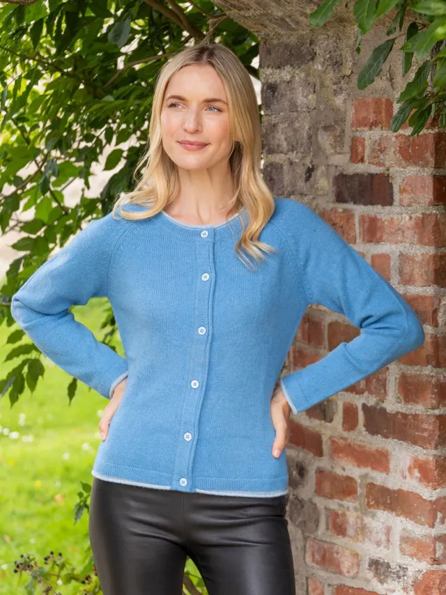 Womens Irish Knitwear|Cashmere And Merino Wool Sweaters*Sweater Shop Wool and Cashmere Cardigan Azure Blue
