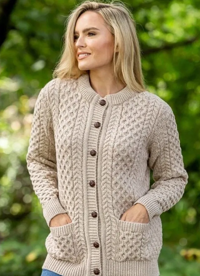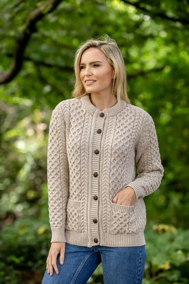 Womens Irish Knitwear|Ladies Cardigans*Sweater Shop Ladies Cable Knit Cardigan Parsnip