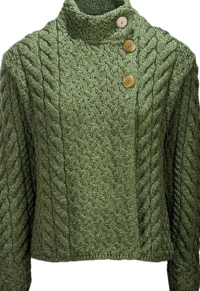 Womens Irish Knitwear|Ladies Cardigans*Sweater Shop Supersoft Aran Cardigan with 3 buttons – Green