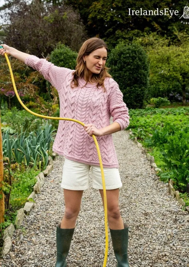 Womens Irish Knitwear*Sweater Shop Primrose Aran Sweater Pale Pink