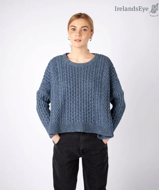 Womens Irish Knitwear|Womens Aran Fisherman Sweaters*Sweater Shop Cropped Aran Sweater Sea Spray Blue