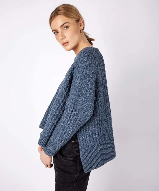 Womens Aran Fisherman Sweaters*Sweater Shop Unisex Merino Wool Aran Sweater Denim Marl