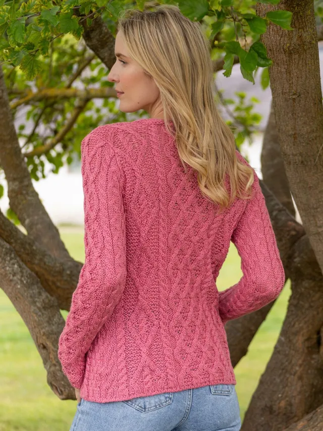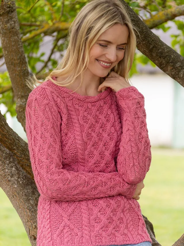 Womens Irish Knitwear|Womens Aran Fisherman Sweaters*Sweater Shop Lambay Lattice Cable Aran Sweater Rosa Pink