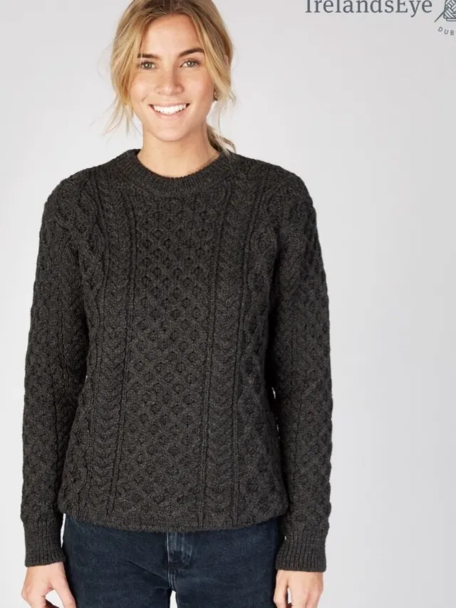 Womens Irish Knitwear|Womens Aran Fisherman Sweaters*Sweater Shop Unisex Heavyweight Aran Sweater Graphite